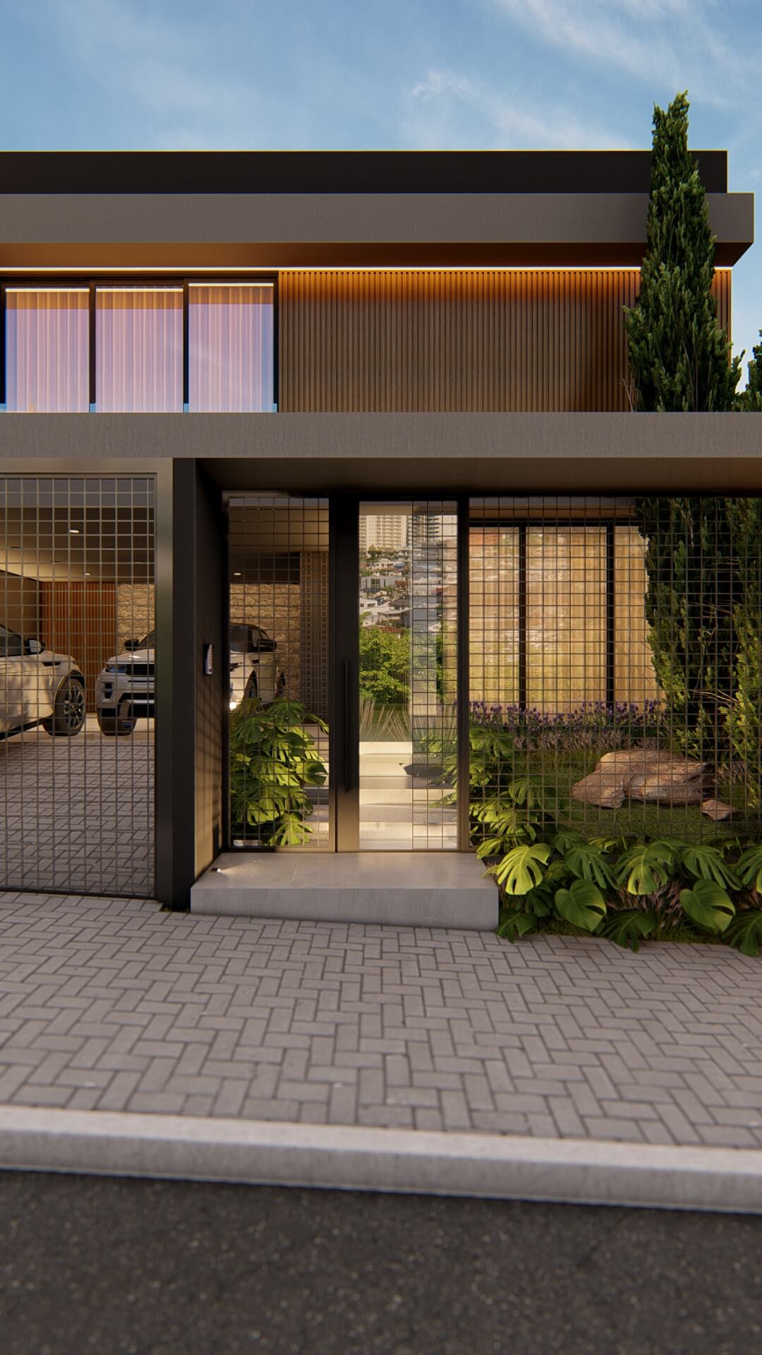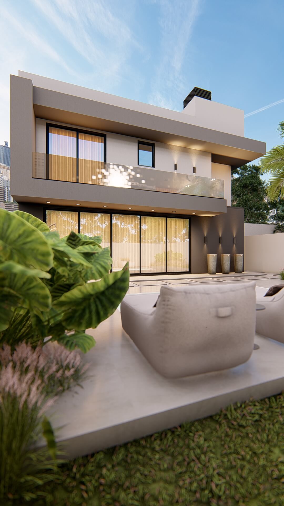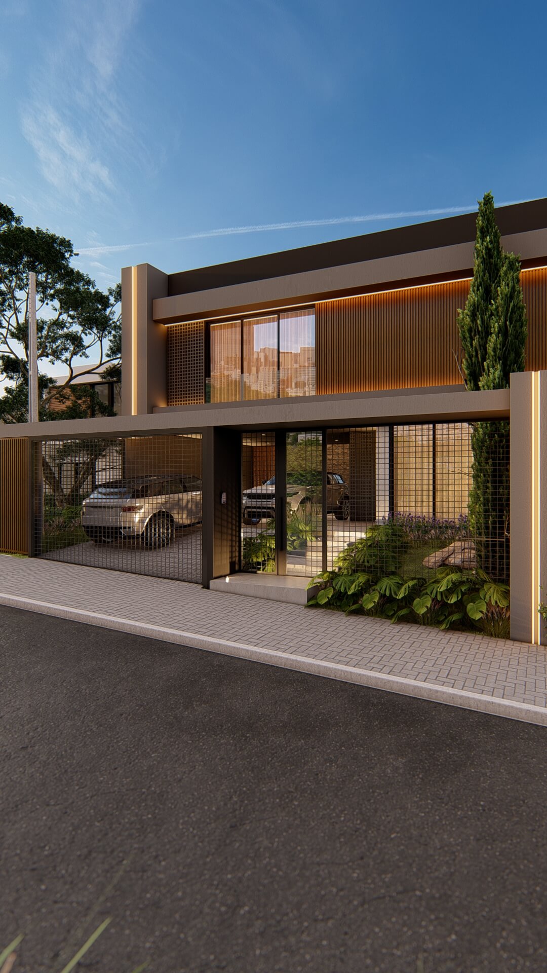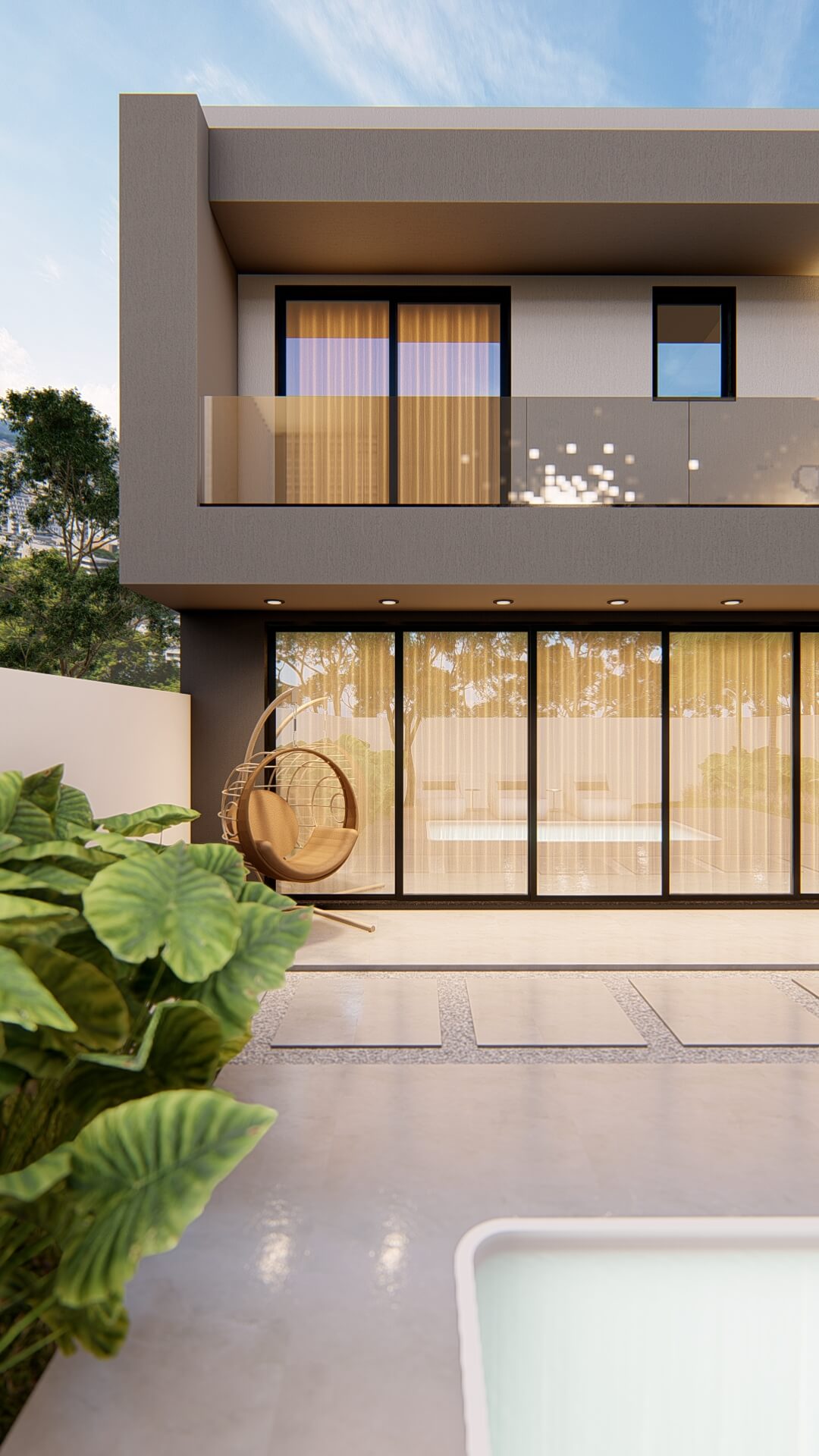 Programa de necessidades: Residência com 2 pavimentos. , sendo no pavimento térreo, cozinha gourtmet, sala de jantar, sala de estar, hall de entrada, garagem dupla lateral, lavanderia, banheiro social e piscina.